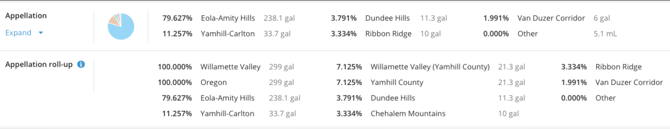 Not bottling a vineyard designate? Our Appellation Rollup now includes all California, Oregon and Washington State appellations so you can see the aggregated lot composition across smaller but overlapping geographic groupings! InnoVint will now show the total percentage that "rolls up" - into a larger appellation.