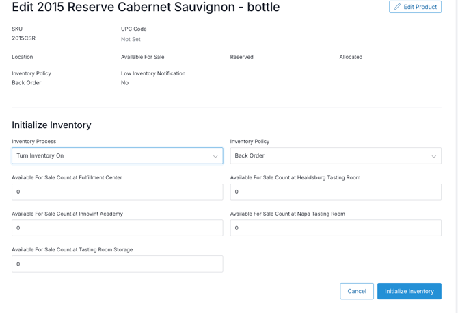 Edit the C7 Product to Turn Inventory On and Initialize Inventory.