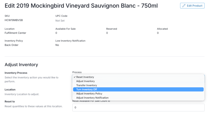 - Reset inventory - in C7 this sets the absolute number for bottle count of inventory for a product in a location (available for sale and reserve counts). This action will not update in SUPPLY, and the SUPPLY overnight inventory synch will override any C7 inventory discrepancies.
